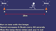 • Test ini meliputi berlari terus menerus di antara dua garis yang berjarak 20 m selama terdengar suara beep yang sudah direkam sebelumnya. Itulah sebabnya test ini sering juga disebut ‘beep test'